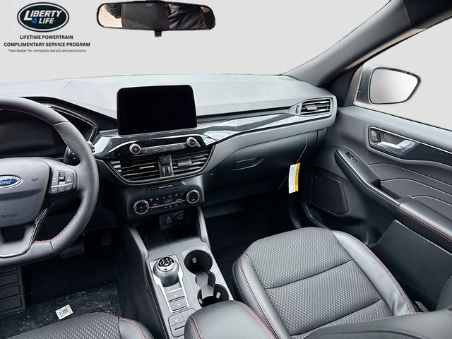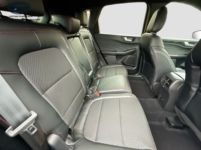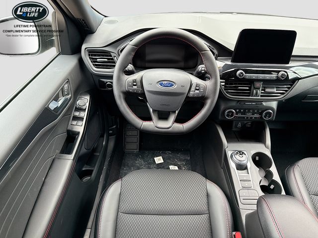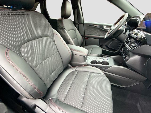 Step inside the Escape ST-Line and you'll be greeted by a spacious and well-appointed cabin. The partial vinyl/cloth front sport contour bucket seats with red stitching provide exceptional support and style, while the 8-way power driver's seat and 4-way manual front passenger seat ensure optimal comfort for all occupants.