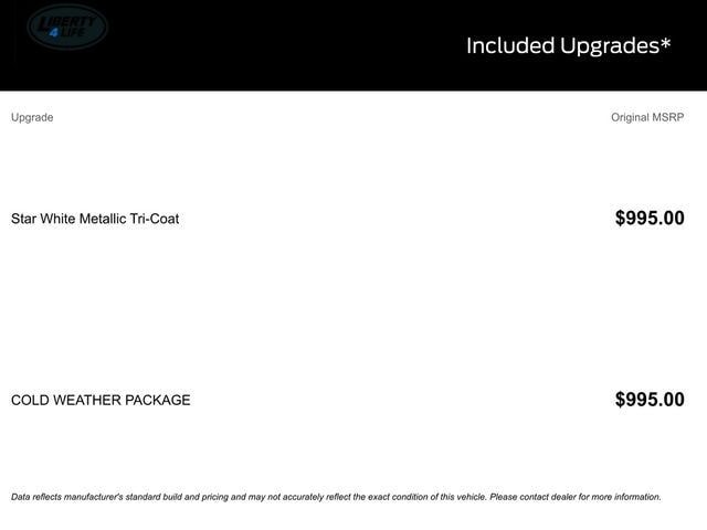 Although every reasonable effort has been made to ensure the accuracy of the information contained on this site, absolute accuracy cannot be guaranteed. This site, and all information and materials appearing on it, are presented to the user "as is" without warranty of any kind, either express or implied. All vehicles are subject to prior sale. Price does not include applicable tax, title, license, and/or $398 documentary service fee.â¡ All titling is subject to a minimum $18 processing fee (varies by County). Vehicles shown at different locations are not currently in our inventory (Not in Stock) but can be made available to you at our location within a reasonable date from the time of your request, not to exceed one week. See dealer for complete details and exclusions on the Liberty 4 Life Program. *Disclaimer: The information provided regarding vehicle options and original MSRP is sourced from third-party data providers. While every effort has been made to ensure the accuracy of the information provided here, the dealer shall not be held liable for any inaccuracies in the options or original vehicle and option pricing. It is strongly advised to consult with the dealer for verification and comprehensive details prior to making a purchase. Manufacturer Retail Bonus requires financing through Manufacturer captive lender. Price Includes:$2000 - Bonus Customer Cash. Exp. 03/31/2026 $500 - Retail Customer Cash. Exp. 03/31/2026