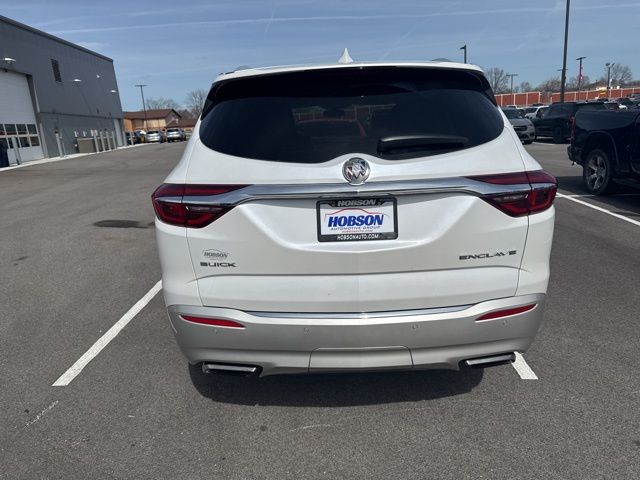 Inside, the Enclave Essence surrounds passengers with premium materials and thoughtful design. The cabin features leather-appointed seating, heated front seats, a power-adjustable driver seat with memory, and tri-zone automatic climate control to keep everyone comfortable. The spacious interior includes second-row captains chairs and a third-row split-folding seat, providing flexible seating for up to seven passengers or additional cargo when needed.