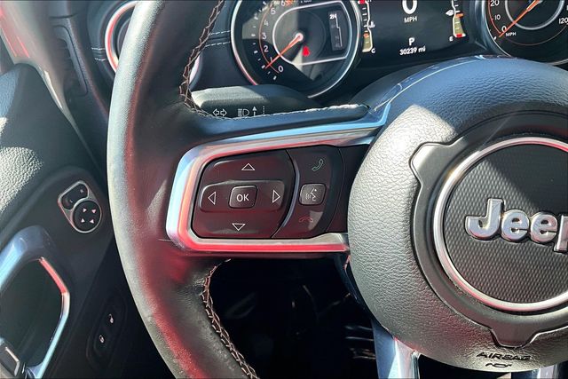 This Wrangler is equipped with the Cold Weather Group, including heated front seats, heated steering wheel, and remote start for added comfort year-round. The LED Lighting Group enhances visibility with LED premium reflector headlamps, front LED fog lamps, and LED daytime running accents. Advanced safety features from the Safety Group and Advanced Safety Group include Blind-Spot and Cross-Path Detection, ParkSense rear park assist, Adaptive Cruise Control with Stop, Full-Speed Forward Collision Warning Plus, Automatic High-Beam Control, and Advanced Brake Assist.